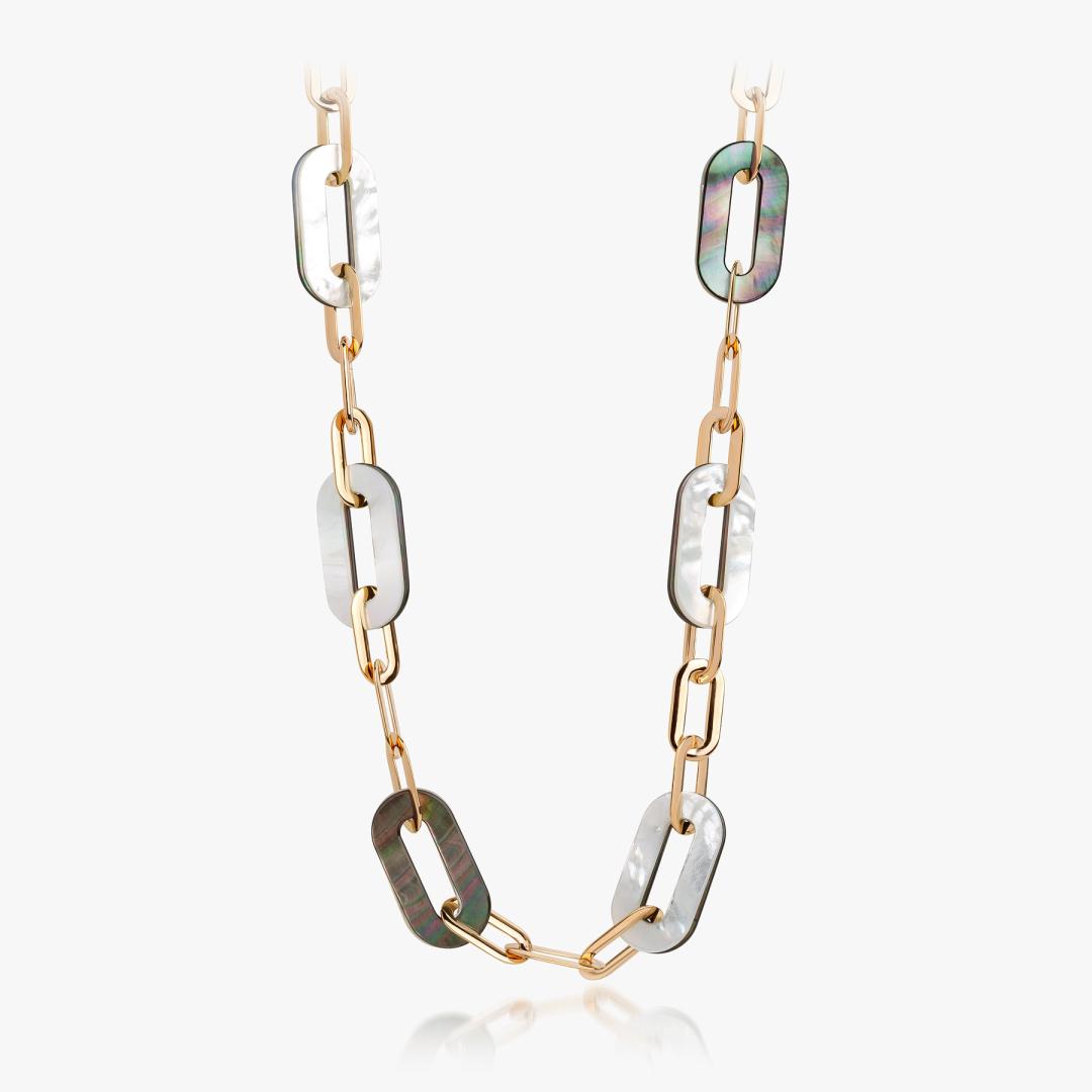Biscuit necklace in pink gold, white gold and grey mother-of-pearl