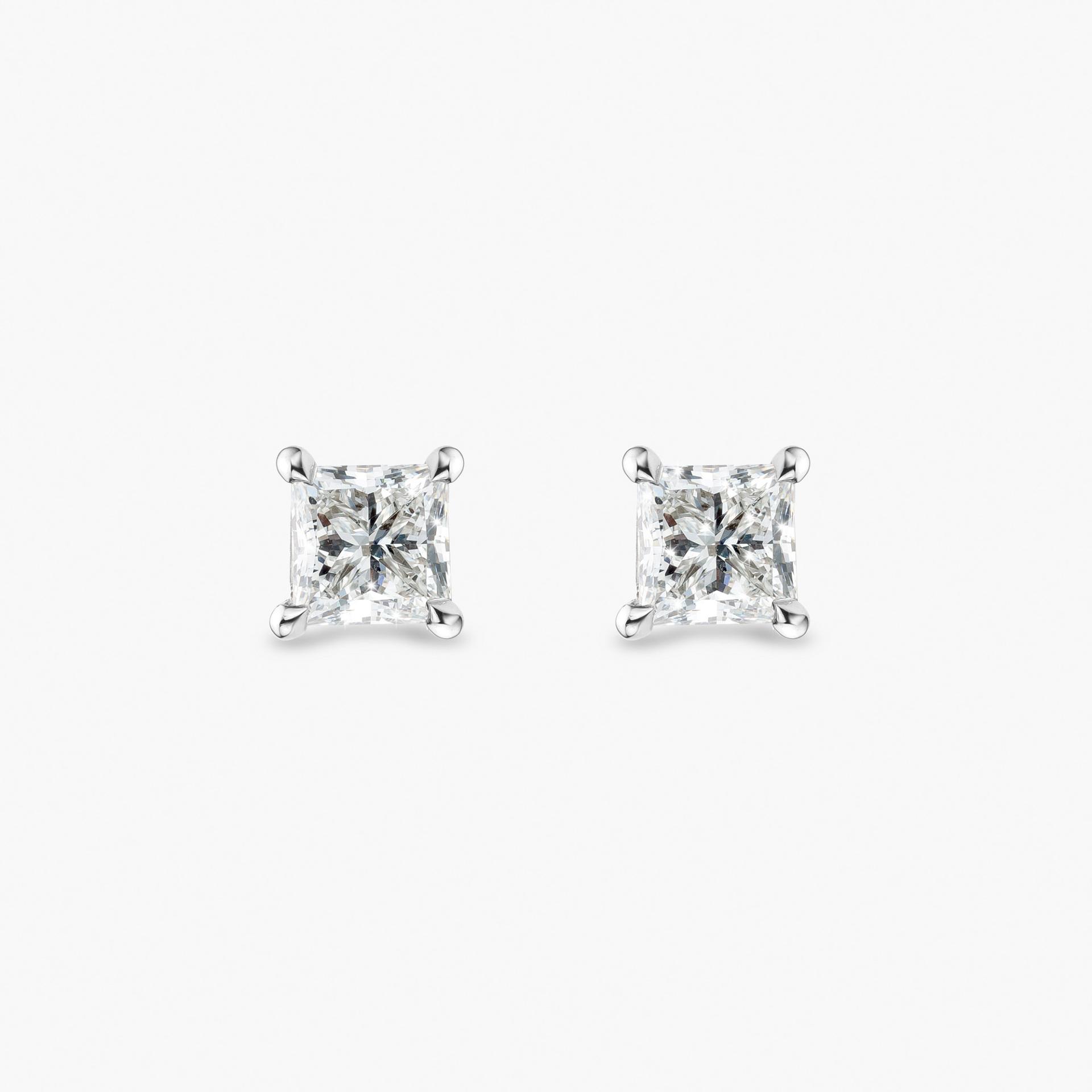 White gold earrings set with a princess cut diamonds