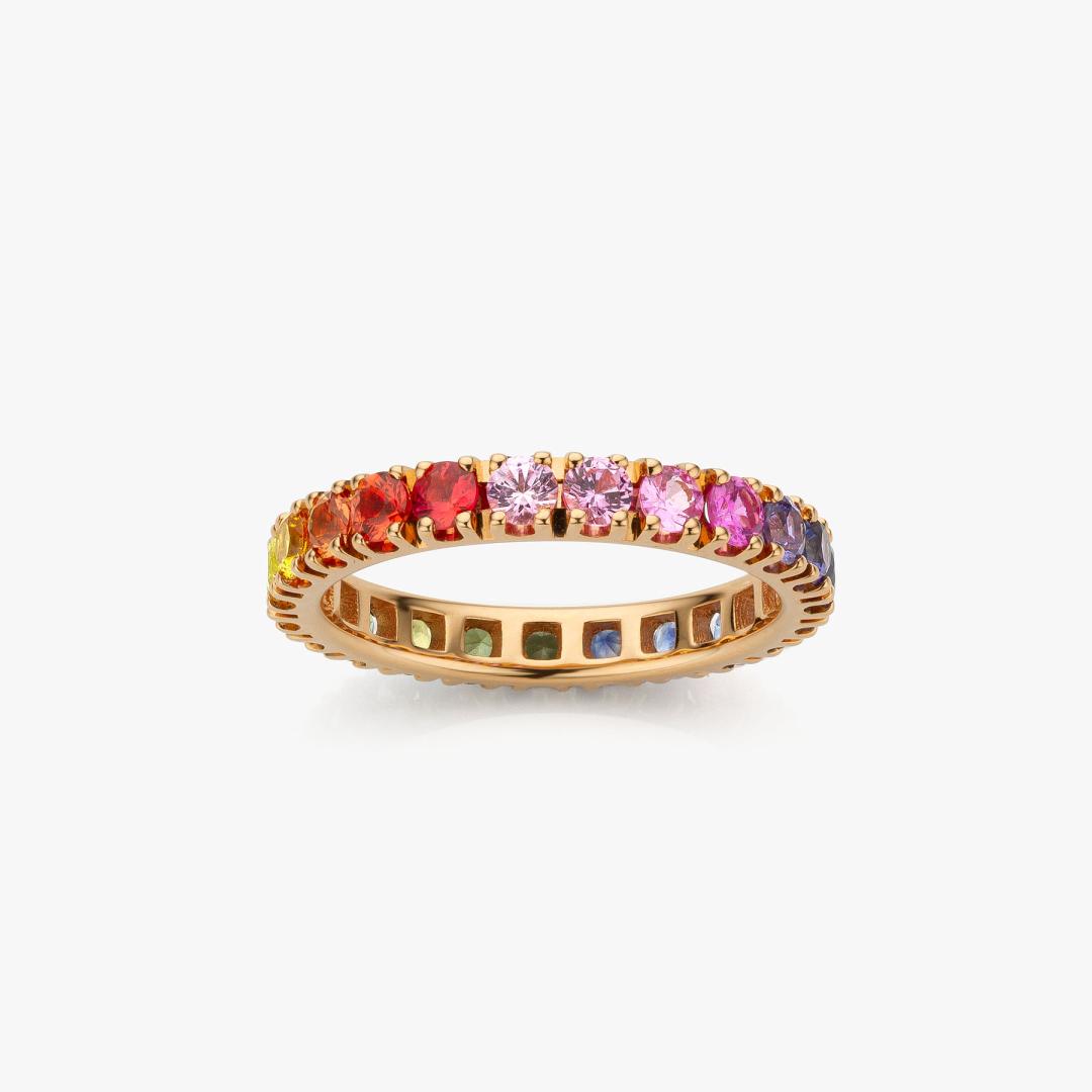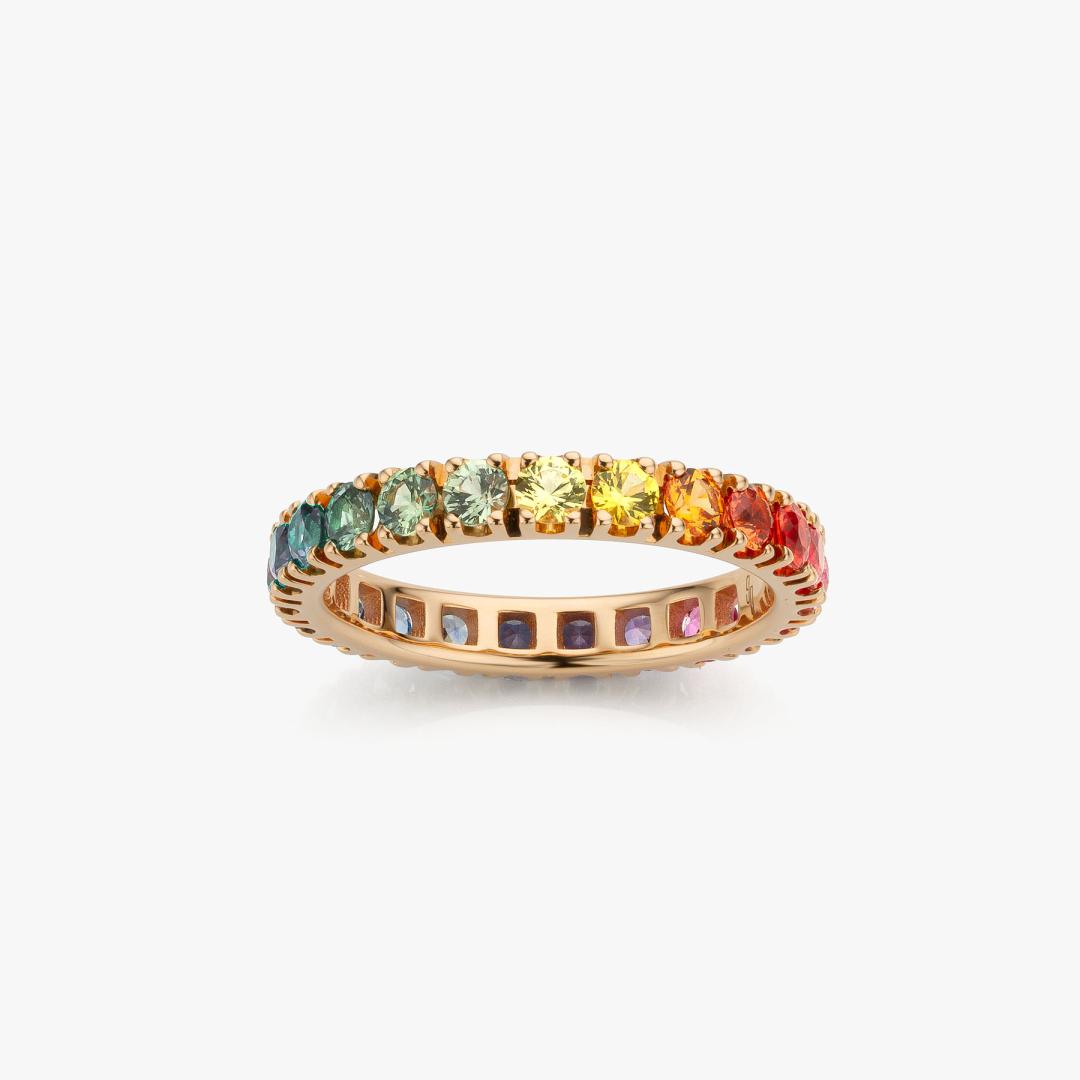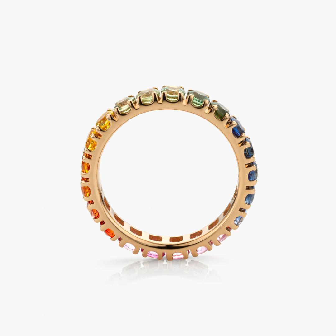 Rose gold ring with rainbow sapphires