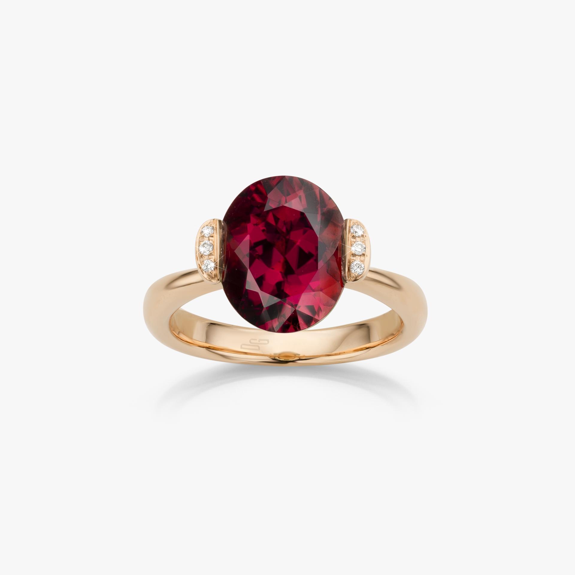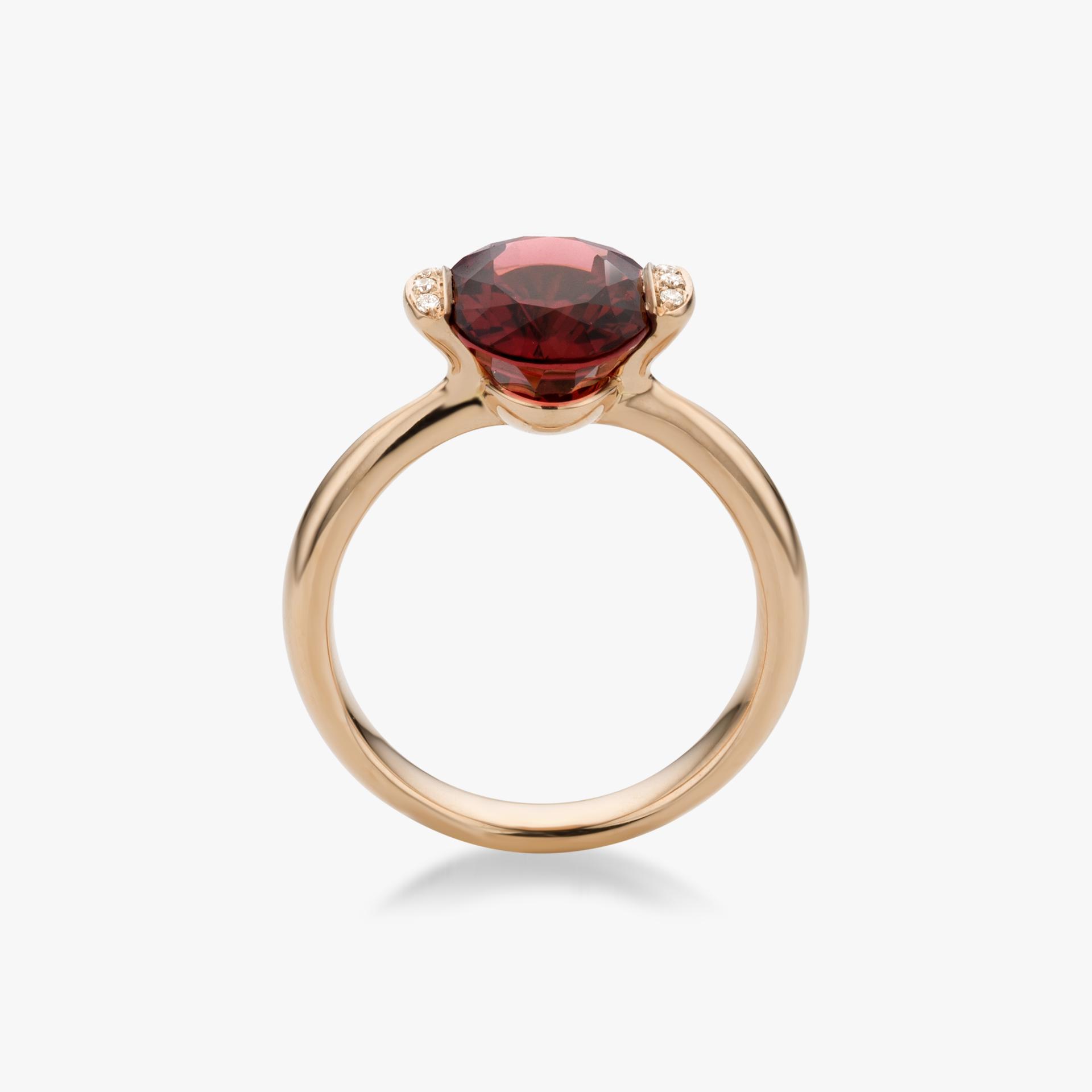 Rose gold ring set with red tourmaline and brilliant cut diamonds