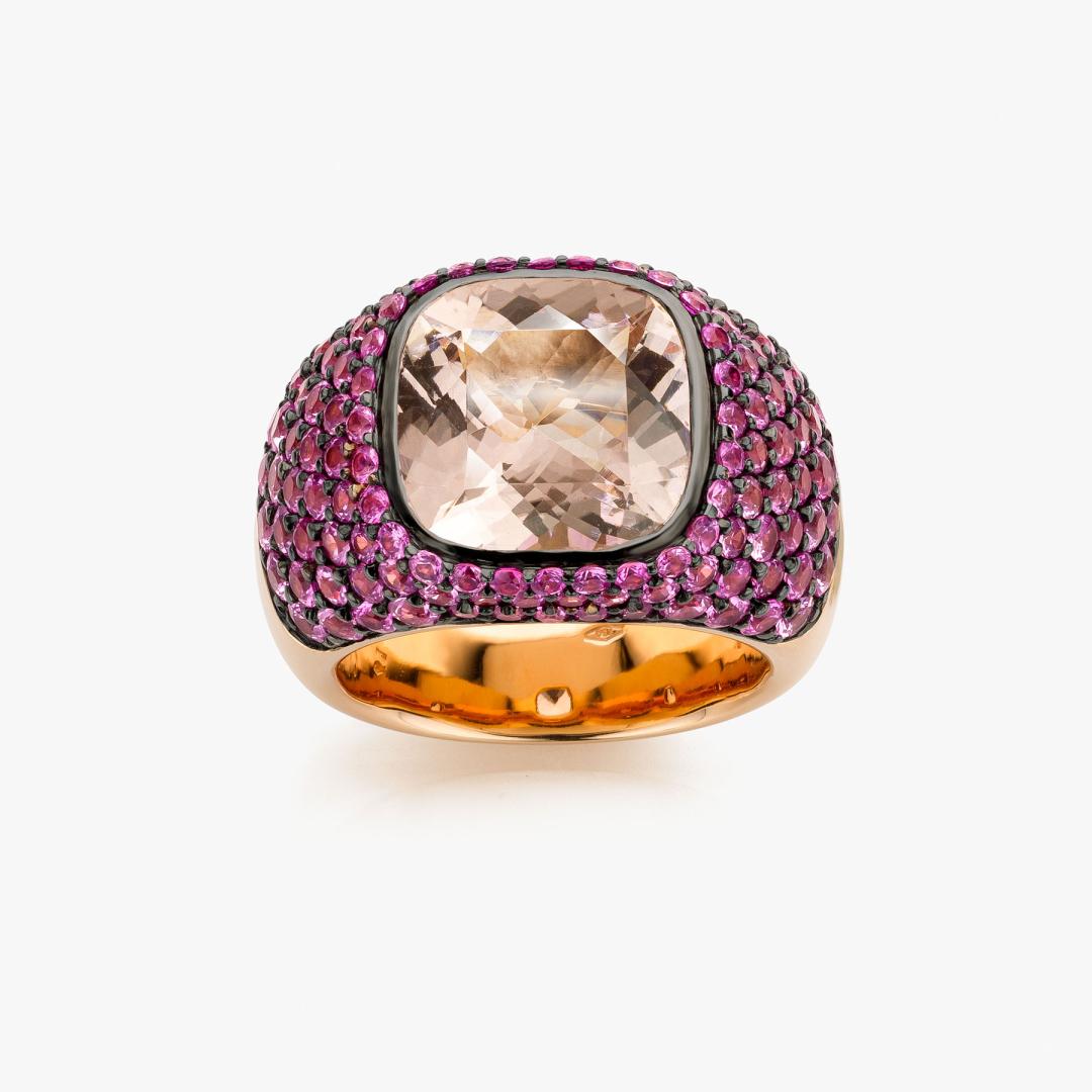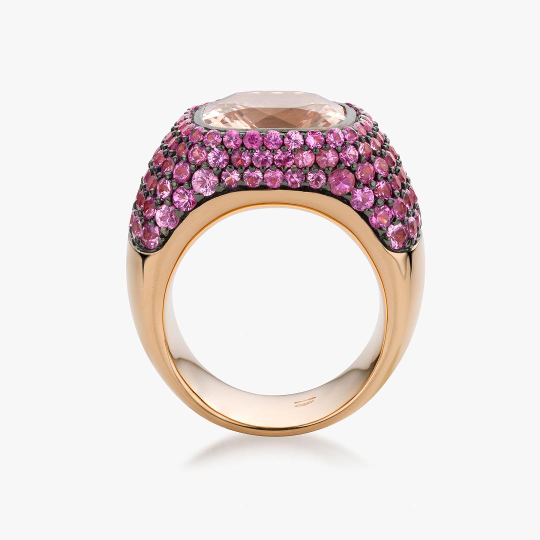 Solis ring in rose gold set with morganite and pink sapphires made by Atelier Wittmann