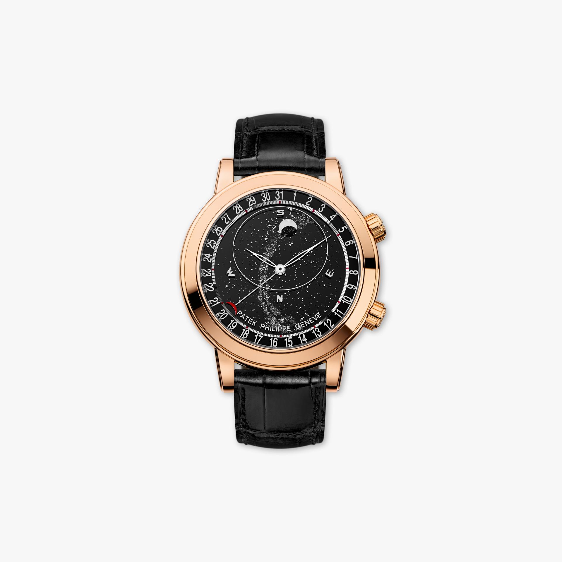 • Dial: Black sapphire-crystal disks for sky background and moon phases. Transparent sapphire-crystal disk for sky chart and Milky Way