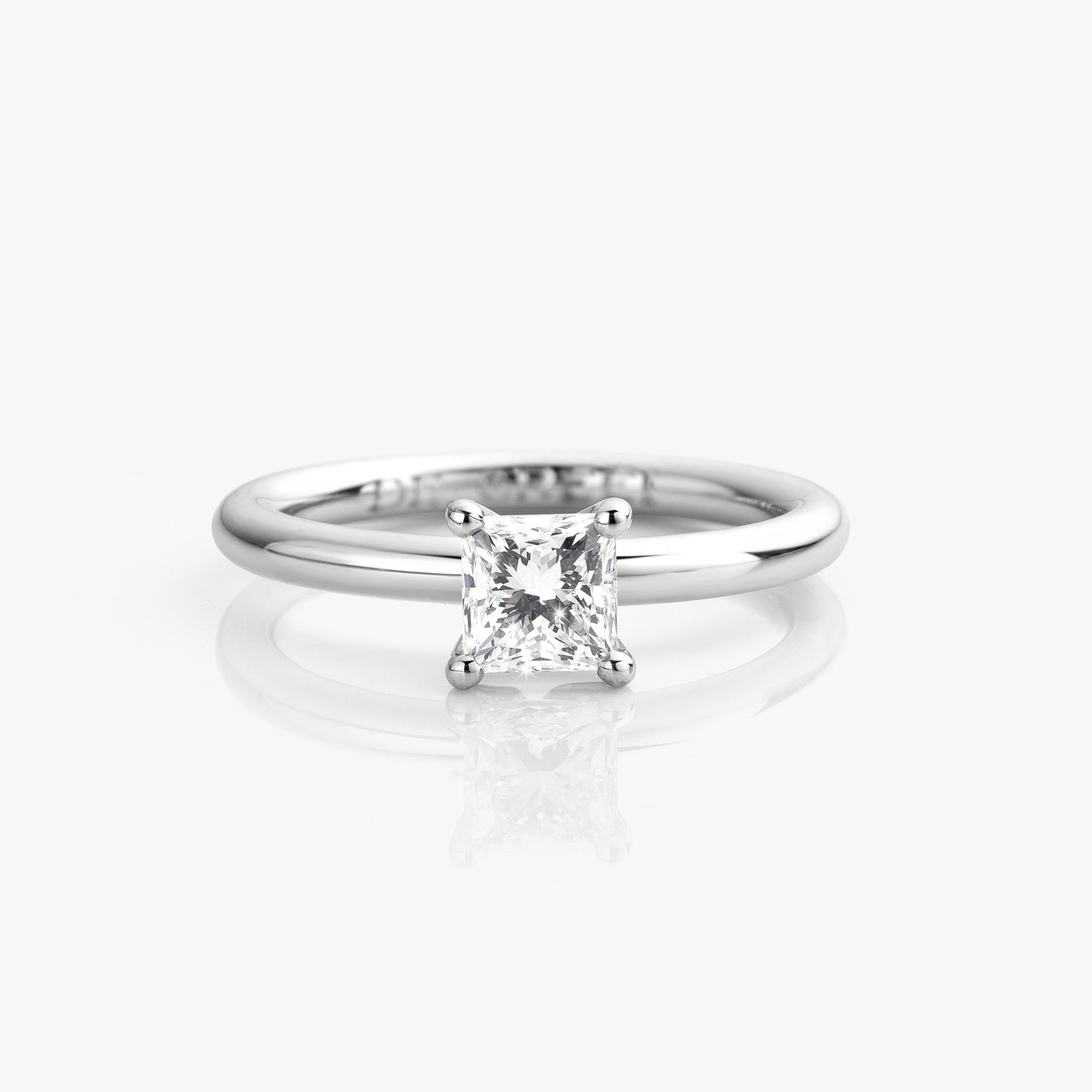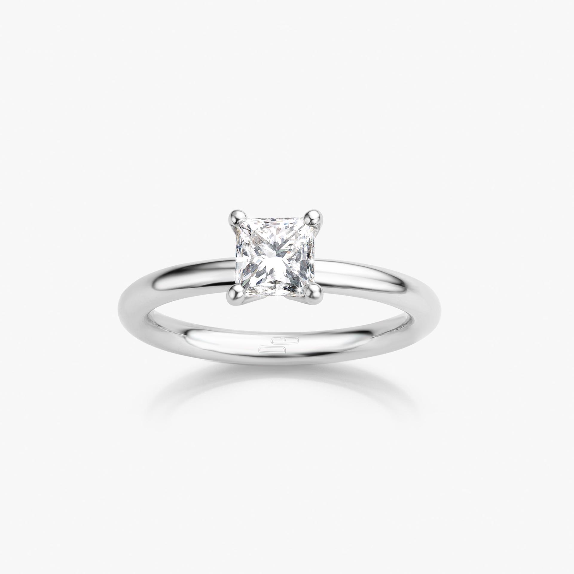 Bague en or blanc sertie d'un diamant taille princesse