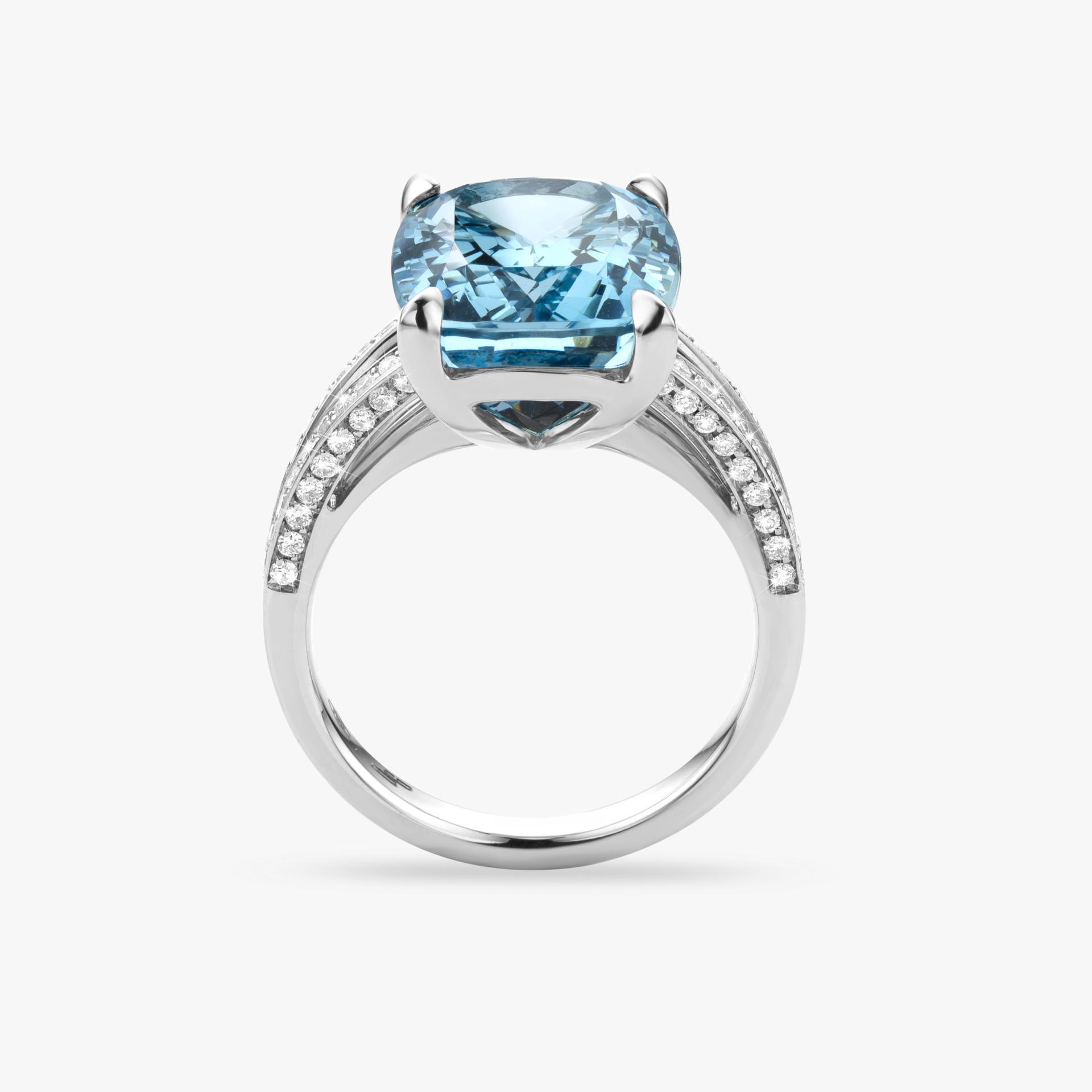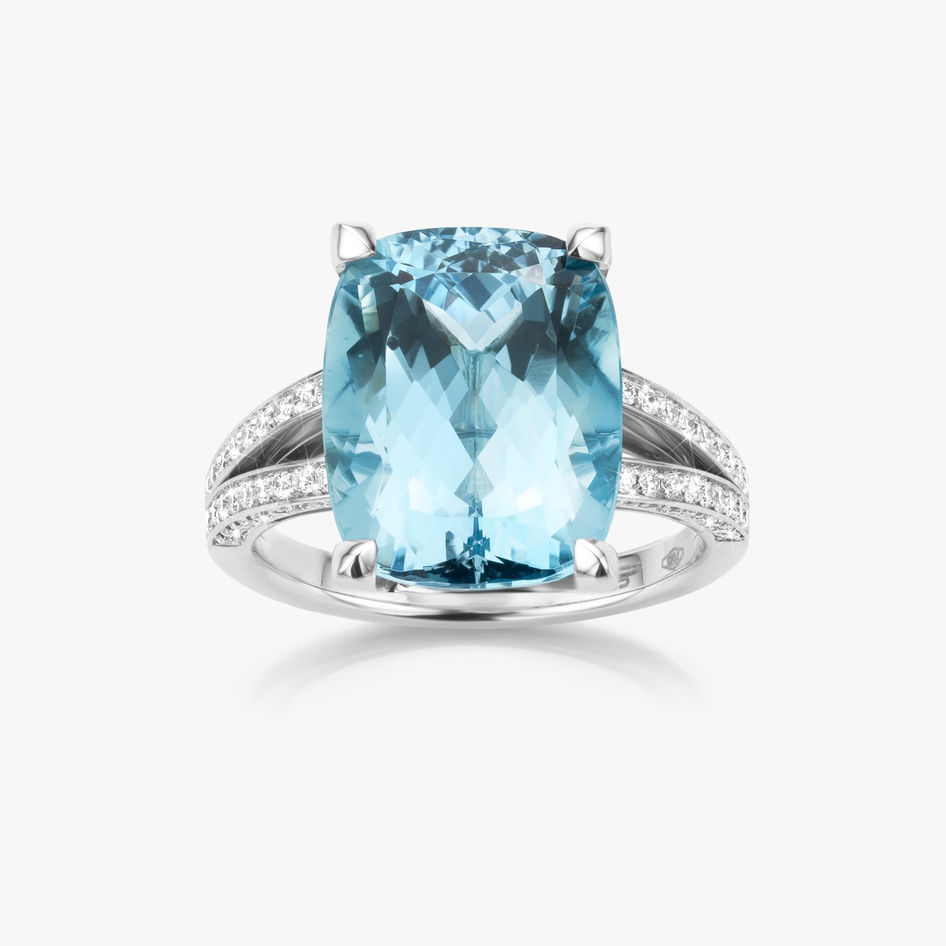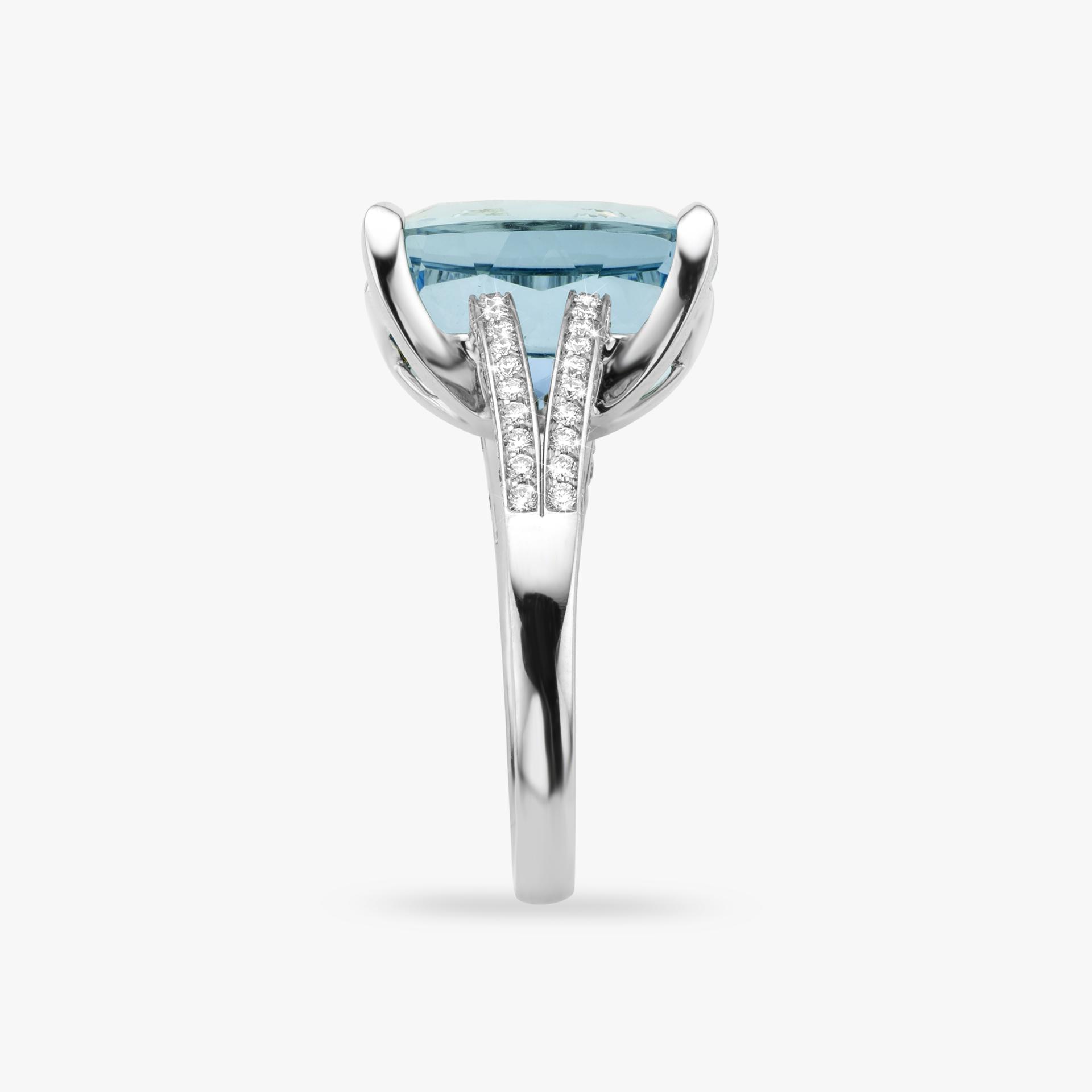 Bague en or blanc sertie d'une aigue-marine bleu et diamants